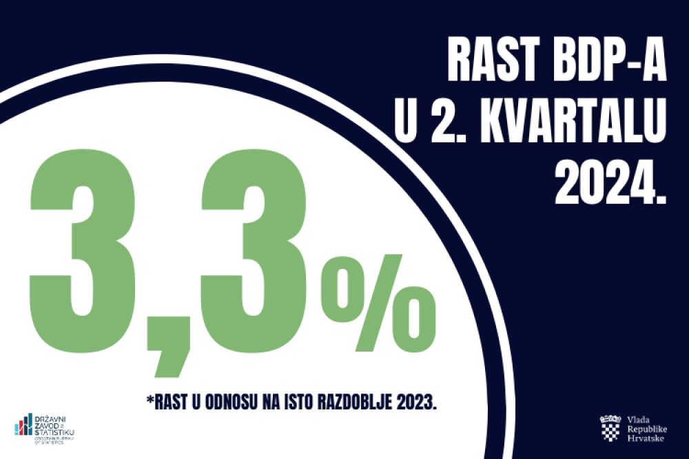 U drugom kvartalu rast hrvatskog bruto domaćeg proizvoda iznosi 3,3%, što je po Eurostatu trenutno najbrži rast u Europskoj uniji. Tome su pridonijeli rast plaća, zaposlenosti i investicija kroz Nacionalni plan oporavka i otpornosti i druge izvore. U sinergijskom djelovanju s gospodarstvenicima i radnicima nastavljamo voditi Hrvatsku prema naprijed“, naglasio je jučer premijer Plenković u svojoj objavi na društvenim mrežama.