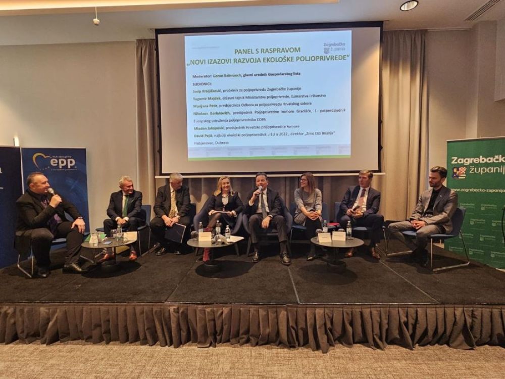Konferencija ,,Novi izazovi razvoja ekološke poljoprivrede" održana je 25. studenog 2024. u Hotelu lnternational. Organizator konferencije bila je Zagrebačka županija, a suorganizatori Ured zastupnice u Europskom parlamentu Sunčane Glavak i Ured Saveznog ministarstva poljoprivrede, šumarstva, regija i vodnog gospodarstva pri Veleposlanstvu Republike Austrije u Zagrebu. Pokrovitelj Konferencije bilo je Ministarstvo poljoprivrede, šumarstva i ribarstva, a medijski pokrovitelji Gospodarski list i Poslovni dnevnik. Uvodna izlaganja održali su: dr.sc. Darko Znaor, izvršni direktor Avalaon Fundation - ,,Stanje i perspektive razvoja ekološke poljoprivrede", - Sunčana Glavak, zastupnica u Europskom parlamentu _ ,,Uloga Europskog parlamenta u jačanju ekološke poljoprivrede", - prof.dr.sc. Branko Grisogono, atmosferski fizičar -,,Jesu li klimatske promjene prijetnja našoj ekološkoj poljoprivredi?". Uvodno izlaganje na panelu održao je dipl.ing. Nikolaus Berlakovich, predsjednik Poljoprivredne komore Gradišće i potpredsjednik Europskog udruženja poljoprivrednika COPA (Committee of Professional Agricultural organisations) na temu ,,Ekološka poljoprivreda u Republici Austriji".
