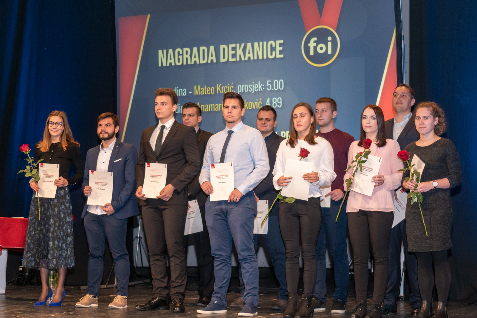 Na Svečanoj sjednici dekanica Fakulteta dodijelila je i Nagrade dekanice i priznanja studentima te priznanja nastavnom i nenastavnom osoblju. Nagrađeni su studenti za izniman uspjeh tijekom studiranja, ali i za uspjeh na temelju ostvarenog prosjeka ocjena. To su: Erik Đuranec, Dino Hrašćanec, Aldin Alagić, Lucija Vrbanić, Tihana Grbac, Lucija Trojko, Nino Orešković, Ivica Bermanec, Lidija Zorić, Antonio Petek, Dino Kliček, Mateo Krcić, Anamarija Jelaković, Kristina Ivatović, Dora Trogrlić, Filip Novački, Tadija Malić, Karla Češković, Ivan Solić, Monika Tenšić, Matija Topličanec, Dora Ćurković, Valentina Kolačko, Katarina Ban, Stjepan Rakarec, Anamarija Grkavac, Lorena Pikl, Lea Treska, Kristina Taradi, Petra Štefić, Damjan Baričević, Tajana Šokec, Karlo Strahija, Maja Benkus, Marko Črepinko, Krešimir Ćurić, Luka Garić, Igor Košmerl, Miro Krištofić. Ove godine, iznimno je dodijeljena i Nagrada ARBONE, strateškog partnera FOI-ja za izvrsnost tijekom studiranja i sudjelovanje u izvannastavnim aktivnostima koju je primio Ivan Oršolić.