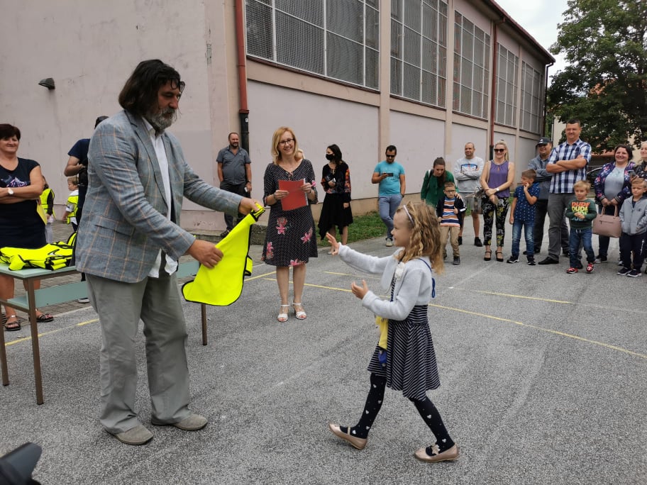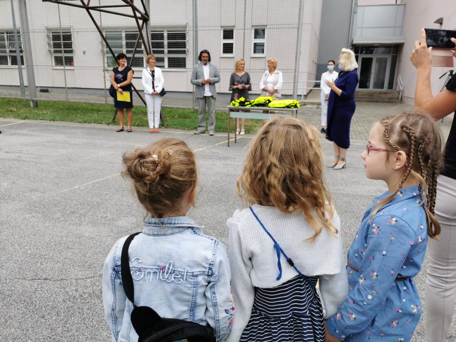 S prvašićima u Prvoj Osnovnoj školi u Varaždinu svih triju razreda koje će ukupno polaziti 49 učenika pozdravili su se i razrednice, ravnateljica škole te gradonačelnik dr. Ivan Čehok sa suradnicima. Osim riječi dobrodošlice koje je uputio učenicima i njihovim roditeljima gradonačelnik je podijelio prvašićima ireflektirajuće prsluke koje će koristiti na putu u školu i iz škole da bi bili uočljiviji u prometu. Govorio je o novom normalnom i prilagodbi škola na novi način nastave te poželio svima sretan početak tog dugotrajnog procesa.