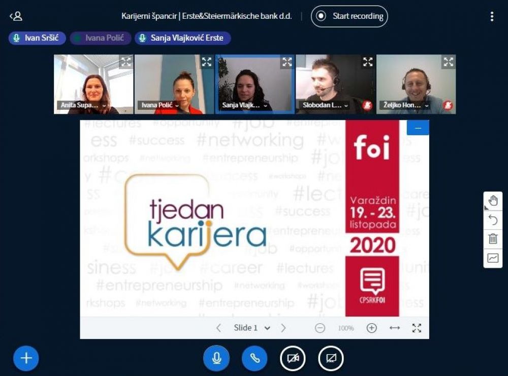 Na Fakultetu organizacije i informatike Sveučilišta u Zagrebu, uspješno je završio deveti TJEDAN KARIJERA, koji se, u organizaciji Centra za podršku studentima i razvoj karijera, održao od 19. do 23. listopada 2020. godine. Tjedan karijera je networking event, namijenjen studentima svih godina i smjerova studija FOI-ja, koji spaja studente i njihove buduće poslodavce, upoznaje studente s novinama i trendovima na tržištu rada te im omogućuje razvoj poslovnih vještina.