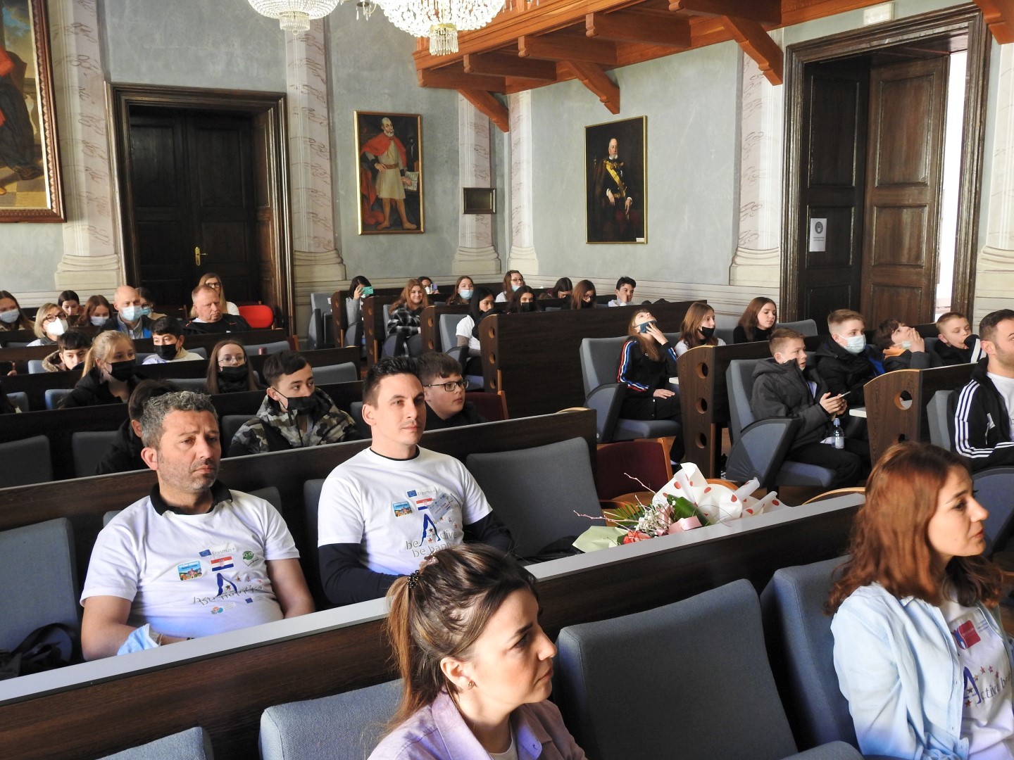 U okviru Erasmus+ projekta „Be A.C.T.I.V.E., Be Happy!“, učenici i njihovi profesori iz Njemačke, Španjolske, Turske, Švedske, Litve i Hrvatske, njih 50-ak, obišli su Županijsku palaču, gdje su ih pozdravili župan Anđelko Stričak te njegova zamjenica Silvija Zagorec.