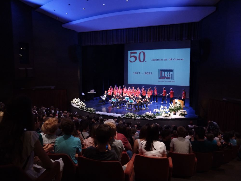 Uz film o školi koji je napravio najbolji presjek pet desetljeća rada, svojim nastupima predstavili su se plesna skupina III. osnovne škole Čakovec, recitatori te školski zbor i tamburaši koji su svečanost zatvorili izvedbom ulomka „Neka cijeli ovaj svijet“ iz mjuzikla „Jalta, Jalta“ koji dijeli rođendan s čakovečkom školom.