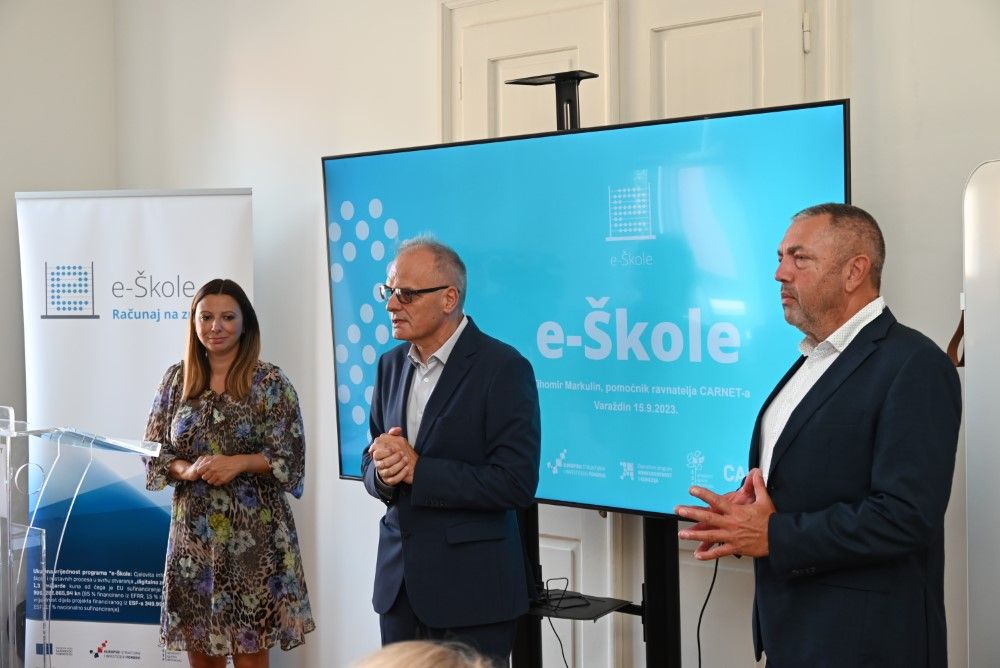 U okviru ovog Dana e-Škola, aktivnosti i rezultate projekta predstavio je Tihomir Markulin, pomoćnik ravnatelja CARNET-a, te prof. dr. sc. Vjeran Strahonja i prof. dr. sc. Nina Begičević Ređep s Fakulteta organizacije i informatike Sveučilišta u Zagrebu kao voditelji projektnih timova na Fakultetu organizacije i informatike, partnera na projektu. Uvodno se sudionicima obratio i dr. sc. Miroslav Huđek, pročelnik Upravnog odjela za prosvjetu, kulturu i sport Varaždinske županije, istaknuvši važan utjecaj digitalizacije, akademske zajednice i projekta e-Škole na osnovne i srednje škole.
