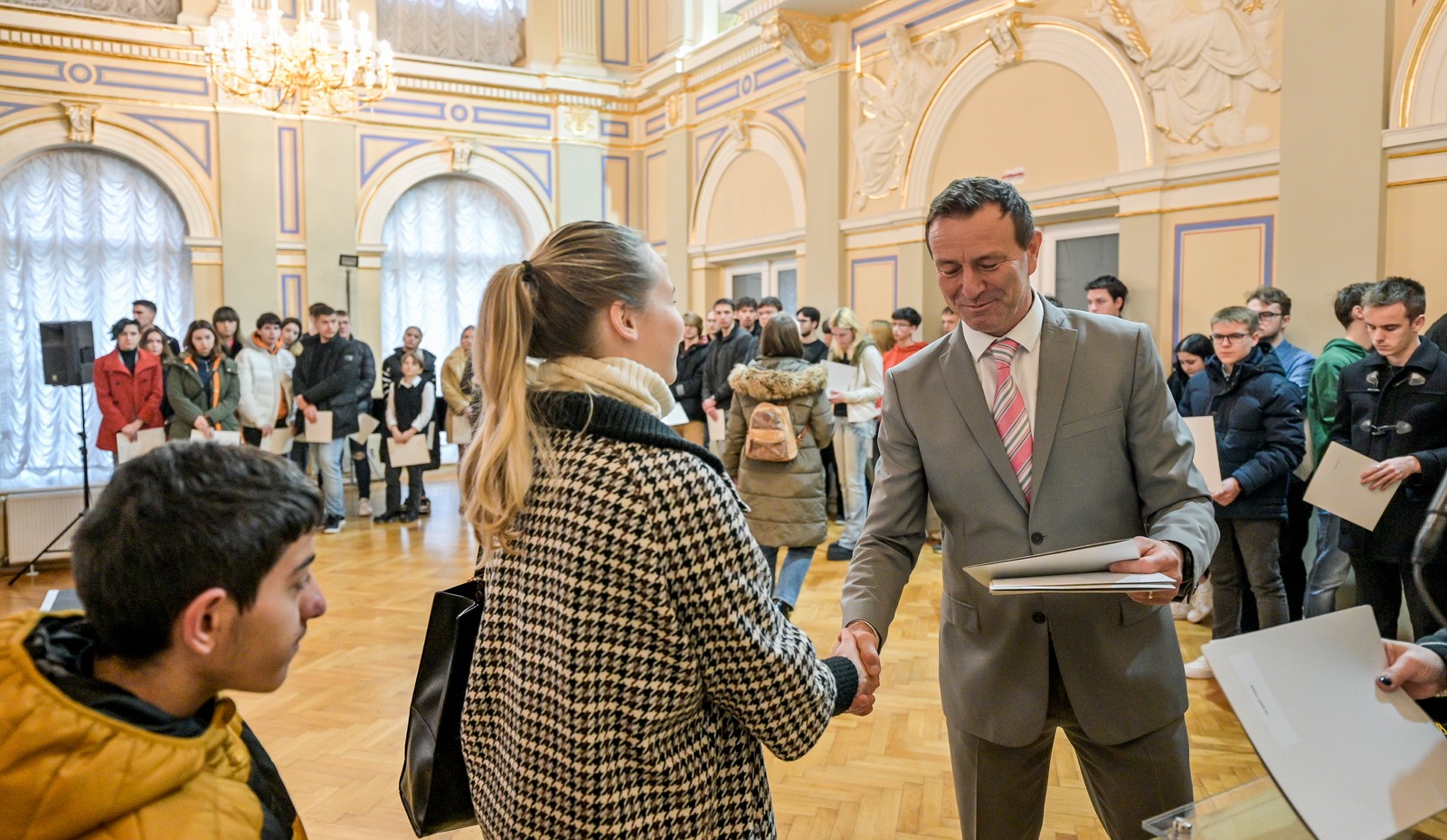 U Velikoj koncertnoj dvorani varaždinskog HNK u subotu je održana svečana dodjela stipendija. Gradonačelnik dr. sc. Neven Bosilj je zajedno s pročelnicom Upravnog odjela za društvene djelatnosti Danijelom Vusić uručio ugovore stipendistima, varaždinskim učenicima i studentima za čije je stipendije u školskoj/akademskoj godini 2023./2024. Grad Varaždin u svom proračunu osigurao 550 tisuća eura.