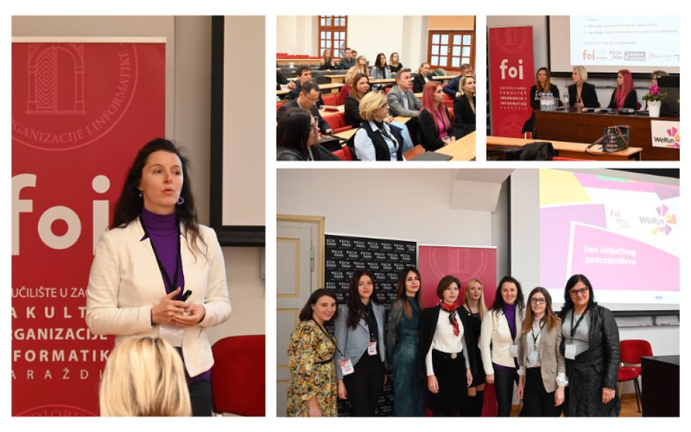 Dan uključivog poduzetništva, posvećen predstavljanju rezultata WeRin projekta, kojem je cilj povećati udio diplomiranih žena poduzetnica i osigurati njihovu integraciju u regionalni poduzetnički ekosustav diljem Europe te unaprijediti učinkovitost poduzetničkog obrazovanja i programa za potporu poduzetništvu s aspekta rodne perspektive, održan je u petak, 1. prosinca 2023. na Fakultetu organizacije i informatike u Varaždinu. Događaj je okupio predstavnike obrazovnog sustava, potpornih poduzetničkih institucija, kao i same poduzetnice, a projektni tim s FOI-ja predstavio je rezultate projekta, radeći na unapređenju učinkovitosti poduzetničkog obrazovanja i programa podrške poduzetništvu s naglaskom na rodnim perspektivama.