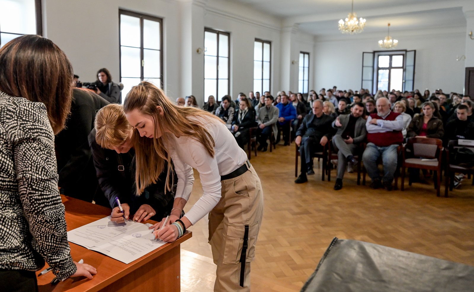 U Glazbenoj školi u Varaždinu danas je održana svečanost potpisivanja ugovora s učenicima i studentima o korištenju stipendija za školsku/akademsku godinu 2023./2024. Ugovore su potpisala 94 nova stipendista, od kojih su 43 učenika i 51 student, dok je ukupan broj svih stipendista 188.