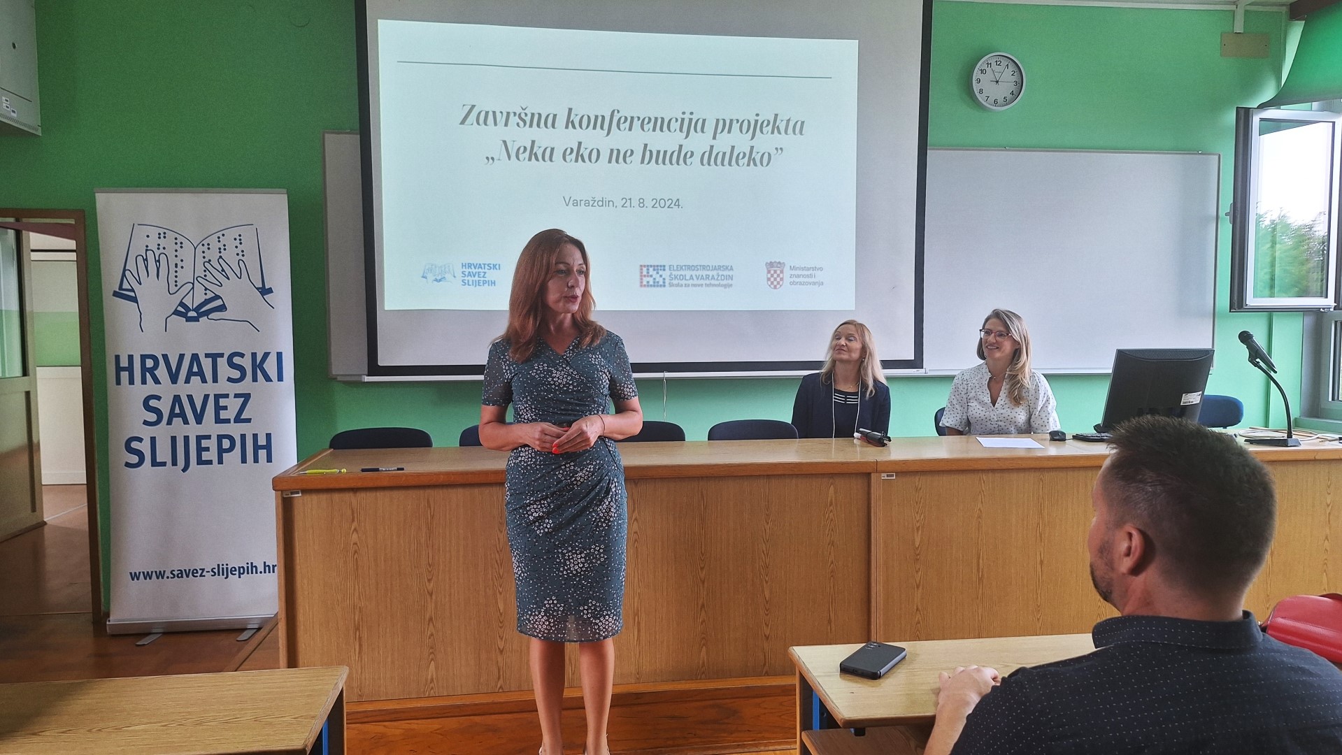 Elektrostrojarska škola Varaždin u srijedu je bila domaćin završne konferencije, na kojoj je predstavljen projekt sufinanciran sredstvima Ministarstva znanosti i obrazovanja čiji su rezultat Smanjenje stereotipa i predrasuda djece bez oštećenja vida o djeci s oštećenjem vida te veća spremnost vršnjaka da pomognu jedni drugima ujedno i i doprinos provedenog projekta „Neka eko ne bude daleko“. Projekt je provodio Hrvatski savez slijepih, a partneri su bile Elektrostrojarska škola u Varaždinu i Medicinska škola u Puli. Svoja iskustva na konferenciji su podijelili učenici koji su sudjelovali na petodnevnom eko-kampu u Edukacijsko-rehabilitacijskom kampu za slijepe Premantura. Bila je to glavna aktivnost projekta u koji su bili uključeni mladi s oštećenjem vida u dobi između 14 i 16 godina te mladi bez oštećenja vida.