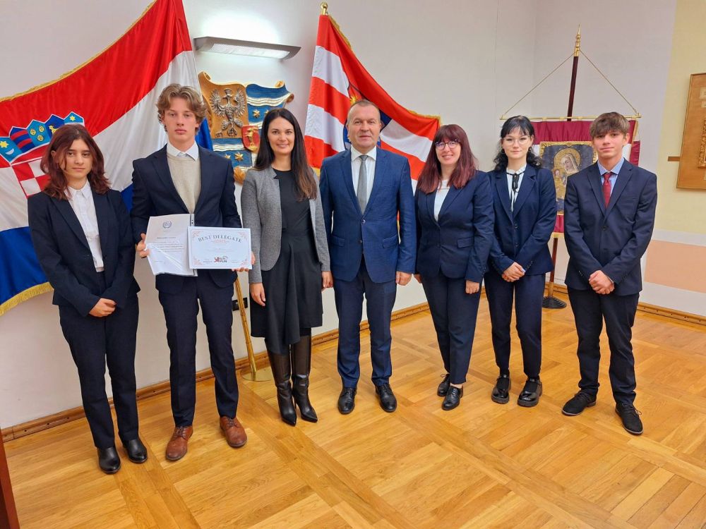 Učenike Prve privatne gimnazije s pravom javnosti Varaždin koji su sudjelovali na MUNOG konferenciji održanoj u Sindelfingenu u Njemačkoj od 17. do 23. listopada primio je u Županijskoj palači župan Varaždinske županije Anđelko Stričak koji im je tom prilikom čestitao na sudjelovanju te na postignutom uspjehu.