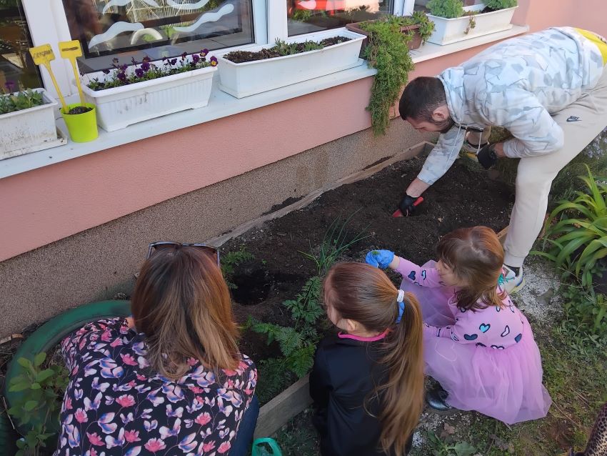 Roditelji su prikupili sadnice cvijeća, povrća i voća te su sa djecom radili i sadili u zajedničkom vrtićkom vrtu. Kroz ovakve aktivnosti u ovim odgojnom skupinama i zahvaljujući partnerskom odnosu odgojiteljica i roditelja skupine Cvjetići i Pčelice, kod djece se razvija osjećaj odgovornosti i brige za biljke te ljubav prema svijetu koji ih okružuje - napominju odgojiteljice. Na kraju radionice sve se pretvorilo u potragu za uskrsnim jajima u dvorištu vrtića, kada su djeca pronalazila i stavljala blagdanske darove u košarice te se radovala dolazećim uskrsnim blagdanima.
