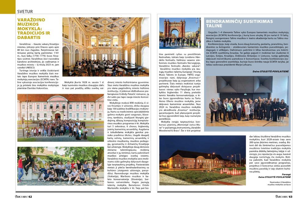 U najnovijem izdanju uglednog litavskog glazbenog časopisa Muzikos Barai iz Vilniusa objavljen je opsežan članak o Glazbenoj školi u Varaždinu, njenoj bogatoj povijesti, aktualnim projektima i viziji budućeg razvoja.