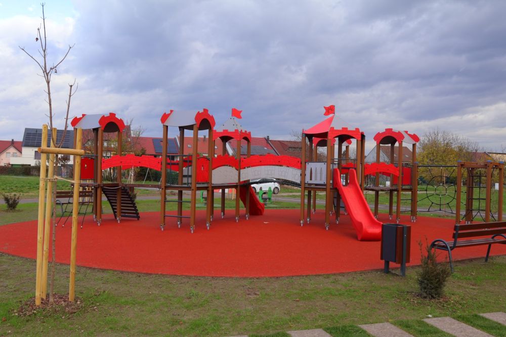 Dječje igralište, smješteno u središtu parka, prostire se na 16 x 13 metara te je u cijelosti prekriveno sigurnosnom podlogom od lijevane gume kako bi se osigurala što veća sigurnost najmlađih. Opremljeno je centralnim kombiniranim igralom, klackalicom, dvije opružne njihalice i vrtuljkom. Prostor za uličnu košarku dimenzija 15,10 x 11,10 metara izveden je na asfaltnoj i obojanoj podlozi.