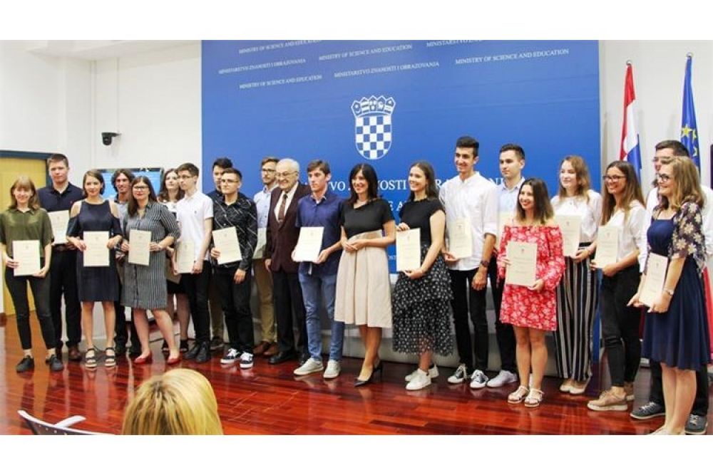 Uz Marka, Ministarstvo je s 2.500 kuna nagradilo i dvadeset učenica i učenika koji su na ovogodišnjoj maturi imali najviši postotak riješenosti iz triju obveznih ispita na višoj, A-razini.