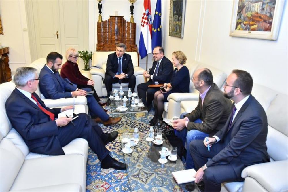 Predsjednik Vlade Plenković primio je u Banskim dvorima predsjednika Europskog gospodarskog i socijalnog odbora (EGSO) Lucu Jahiera. Uz predsjednika Vlade bili su ministar rada i mirovinskoga sustava Josip Aladrović i ministrica za demografiju, obitelj, mlade i socijalnu politiku Vesna Bedeković.