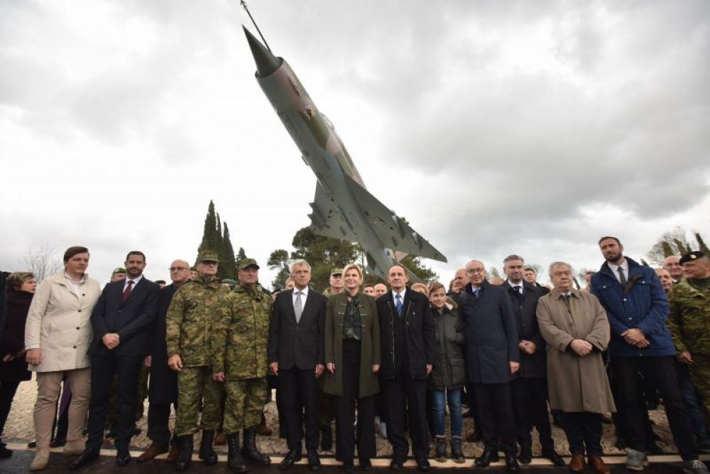 Predsjednica je podsjetila na vijest o preletu pilota Danijela Borovića, koji je u veljači 1992. MIG-om 21 doletio u Pulu i stavio se na raspolaganje Hrvatskoj vojsci, ratnom zrakoplovstvu i svojem hrvatskom narodu. Njegovim preletom Hrvatska je dobila prvi nadzvučni borbeni zrakoplov, hrvatskim braniteljima ulio je dodatno samopouzdanje i vjeru u pobjedu, a svijetu jasno pokazao da tzv. JNA nije narodna nego agresorska armija, kazala je.