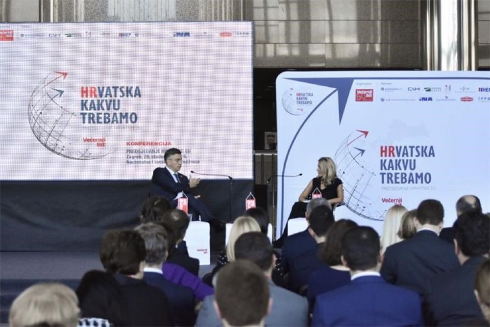 „Hrvatsko predsjedanje Europskom unijom je politička šansa za pozicioniranje i jačanje hrvatske uloge u Europi te još veće senzibiliziranje hrvatske javnosti da je Hrvatska dio te Europe“, rekao je danas predsjednik Vlade Andrej Plenković u intervjuu s novinarkom Sandrom Veljković na konferenciji Večernjeg lista „Hrvatska kakvu trebamo" u Nacionalnoj i sveučilišnoj knjižnici u Zagrebu.„Mi smo dio toga i oni koji sudjeluju u odlučivanju", nastavio je premijer. „Djelujemo kao akter i cijeli smisao ovog što radimo ima jednu koherentnu viziju jačanja vanjskopolitičkog položaja Hrvatske. Svi iskusni kolege bez puno dilema reći će da naš vanjskopolitički položaj nikad nije bio utjecajniji nego danas", dodao je.