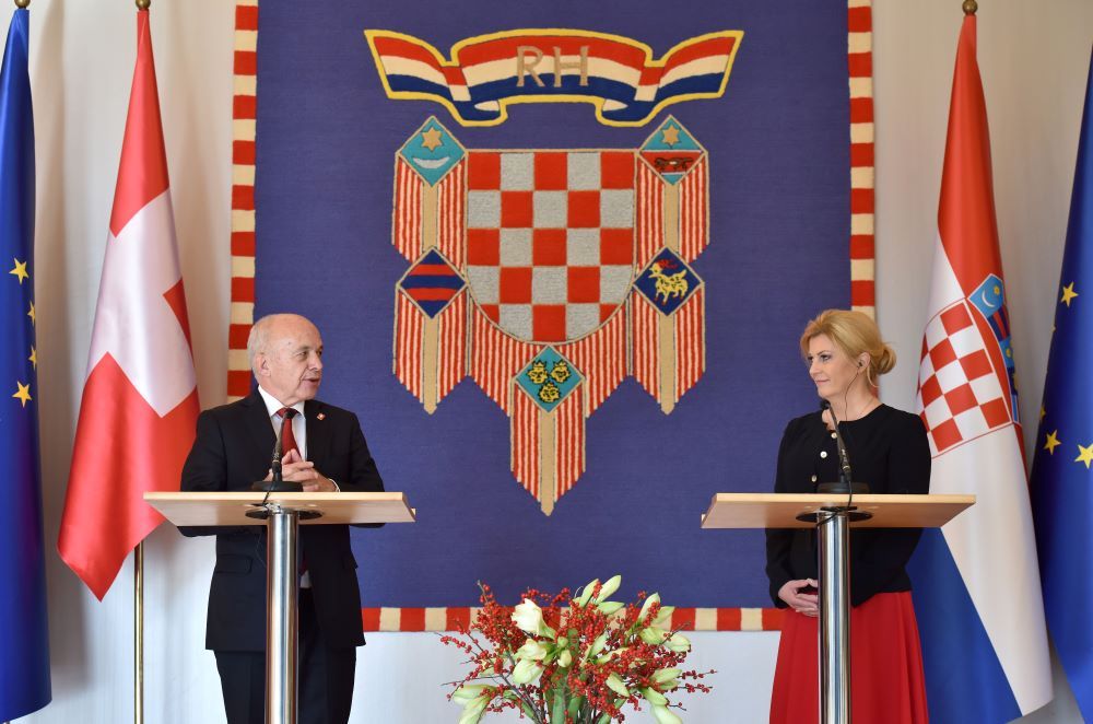 Zaključno, Predsjednica je kazala kako Hrvatska podupire snažne odnose između Europske unije i Švicarske jer je Europska unija najvažniji gospodarski partner Švicarske. U tom smislu, istaknula je važnost što skorijeg potpisivanja Sporazuma o institucionalnom okviru jer bi to pridonijelo jačanju gospodarske razmjene i našim kulturnim, znanstvenim, obrazovnim i svim drugim vezama.Predsjednik Švicarske Konfederacije Ueli Maurer kazao je kako je Švicarska jako zainteresirana da se postojeći dobri odnosi s Hrvatskom još više unaprijede, posebice na području gospodarstva, ali i novih tehnologija. „Hrvatska je stabilna zemlja koja ima visokokvalificiranu radnu snagu i pripada istom kulturnom krugu i u tom bi smislu na neki način mogla biti odskočna daska za izvoz švicarskih poduzeća koja bi se nastanila u Hrvatskoj i izvozila svoje proizvode u druge zemlje”, kazao je.