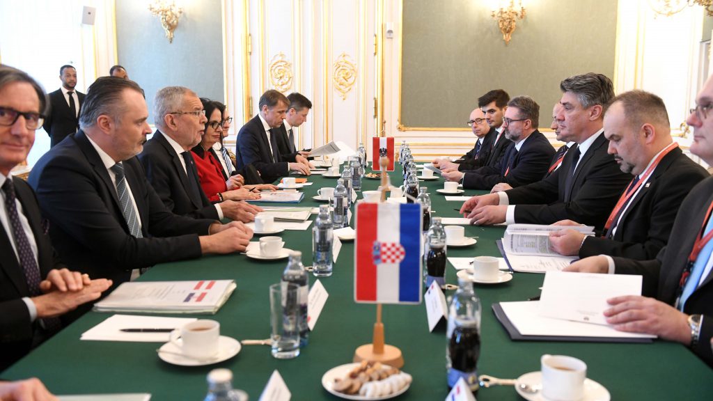 Susret predsjednika Republike Hrvatske Zorana Milanovića i Saveznog predsjednika Republike Austrije Alexandera Van der Bellena započeo je ceremonijom svečanog dočeka nakon kojeg je uslijedio sastanak dvojice predsjednika te bilateralni sastanak izaslanstava Republike Hrvatske i Republike Austrije.