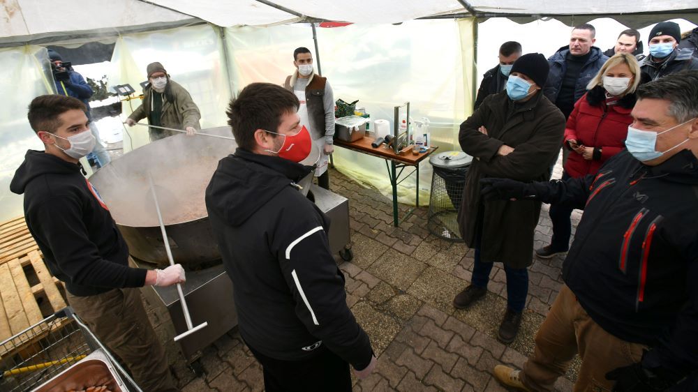 Predsjednik Republike Zoran Milanović obišao je potresom pogođeno područje Sisačko-moslavačke županije u sklopu kojeg je posjetio Petrinju, Majske Poljane i Sibić. U Petrinji je najprije jutros posjetio kuhare volontere koji već dva tjedna pripremaju hranu za građane te im je zahvalio na angažmanu i, kako je rekao, „krvavom radu“. A kasnije, u izjavi za medije, na upit novinara komentirao je i angažman tvrtke Pleter koja je preuzela pripremanje toplih obroka. „To je firma koja radi uglavnom s Ministarstvom obrane. Ja ne znam kakvu razliku čini i kakav doprinos daje Pleter, a to ne bi mogli napraviti lokalni ugostitelji za isti novac, kroz neki oblik javnih radova, da ih se na taj način potakne. Ne kroz volonterstvo. Ja bih bio sretniji da taj posao rade sisački i petrinjski ugostitelji, koji ionako ne mogu raditi zbog korone i koji bi kroz tih dvadeset ili trideset kuna za obrok mogli platiti svoje radnike, konobare i kuhare koji već tjednima ne rade, a od nekuda trebaju primati plaću“, rekao je Predsjednik. Predsjednik Republike obišao je i više obitelji čije su kuće stradale u potresu u Majskim poljanama i Sibiću. „Došao sam obići ljude. Vidio sam kakvo je stanje na terenu, radi se. U Majskim Poljanama je jako puno službi na terenu, dosta je šteta, naročito šteta na kućama iz obnove. U Sibiću koji je obnovljen 1998. godine praktično svaka kuća koja je bila u obnovi oštećena je do te mjere da se u njima ne može živjeti“, rekao je predsjednik Milanović. Na pitanje novinara kako komentira poslijeratnu obnovu, kazao je: „Tu se kokošarilo. Ili su loši projekti pa su kuće građene po lošim projektima, ili je netko krao na materijalu. Prošlo je dvadeset godina, ne može sve biti ratno profiterstvo, ovo je kokošarenje i potkradanje. To je jedna od naših sramota“. Tijekom posjeta obišao je i gradilište za kontejnersko naselje u petrinjskoj ulici Sajmište na kojem je angažirana mehanizacija Hrvatske vojske, a sastao se i s gradonačelnikom Petrinje Darinkom Dumbovićem, gradonačelnicom Siska Kristinom Ikić Baniček i dogradonačelnicom Gline Brankom Bakšić Mitić.