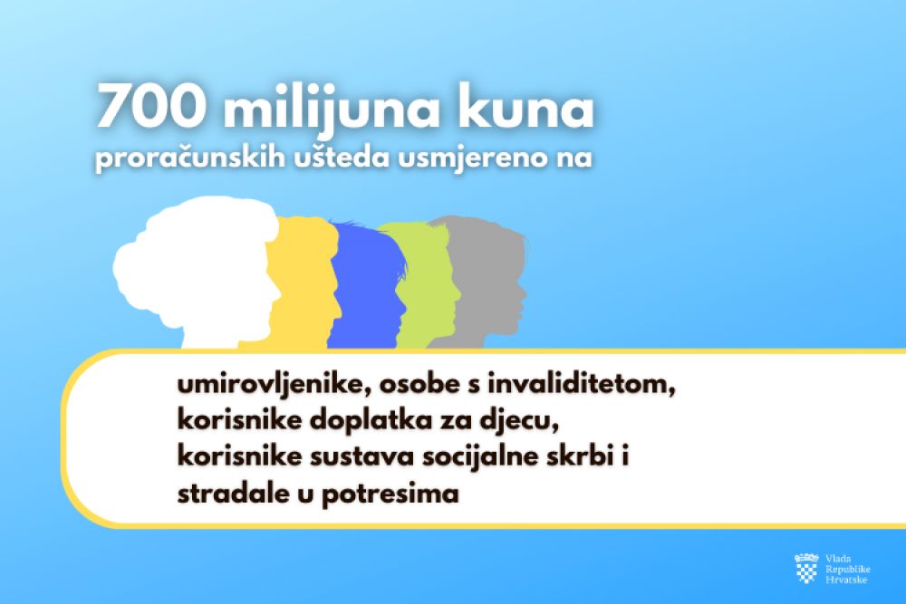 700 milijuna kuna jednokratnih novčanih pomoći umirovljenicima, korisnicima prava u sustavu socijalne skrbi te stradalima u potresu