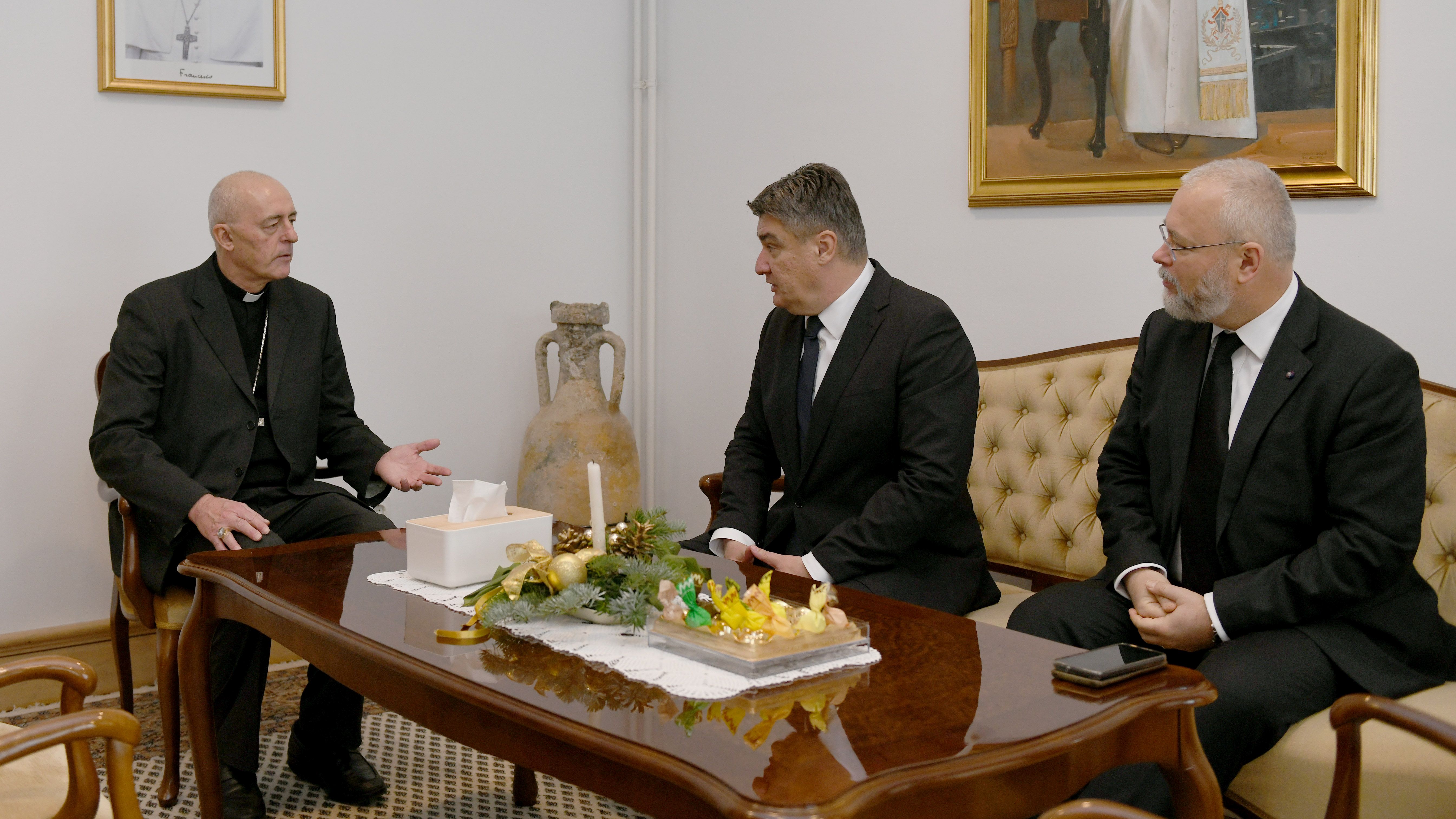 Povodom smrti pape u miru Benedikta XVI. predsjednik Milanović ranije je uputio i sućut Njegovoj Svetosti papi Franji. Uz predsjednika Milanovića na susretu s apostolskim nuncijem nadbiskupom Giorgiom Linguaom bio je savjetnik Predsjednika Republike za vanjsku i europsku politiku Neven Pelicarić.