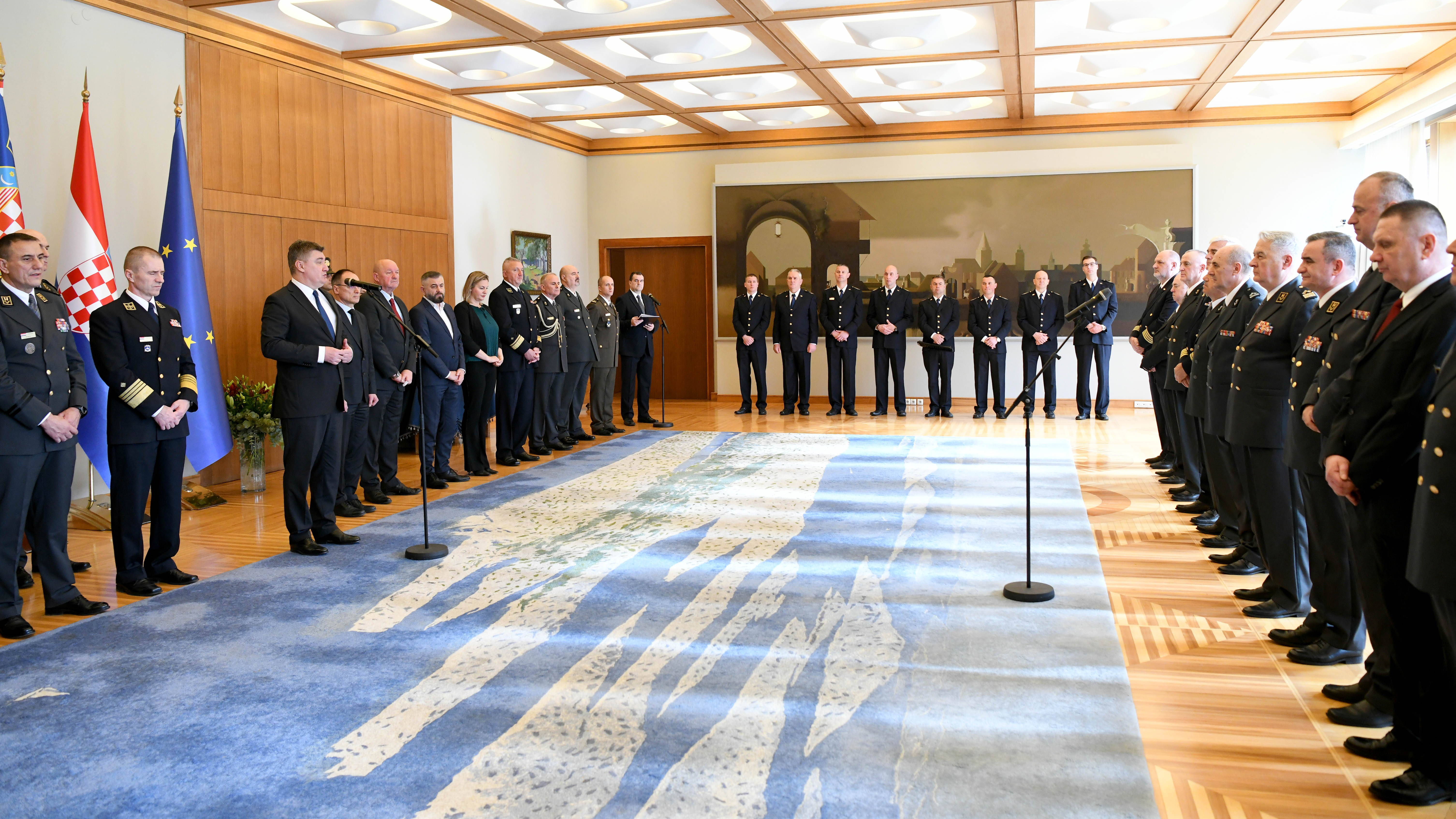 Uz predsjednika Milanovića bili su savjetnik Predsjednika za obranu i nacionalnu sigurnost Dragan Lozančić, posebni savjetnik Predsjednika za veterane Domovinskog rata Marijan Mareković, pročelnik Vojnog ureda Kabineta za obranu i nacionalnu sigurnost Ureda predsjednika kontraadmiral Predrag Stipanović, pobočnik Predsjednika Republike brigadir Vlado Čulina, stožerni časnik za operativnu potporu Vojnog ureda Ureda predsjednika brigadir Ivica Kranjčević i stožerni časnik za informatičku potporu Vojnog ureda Kabineta za obranu i nacionalnu sigurnost, časnički namjesnik Hrvoje Krajačić.