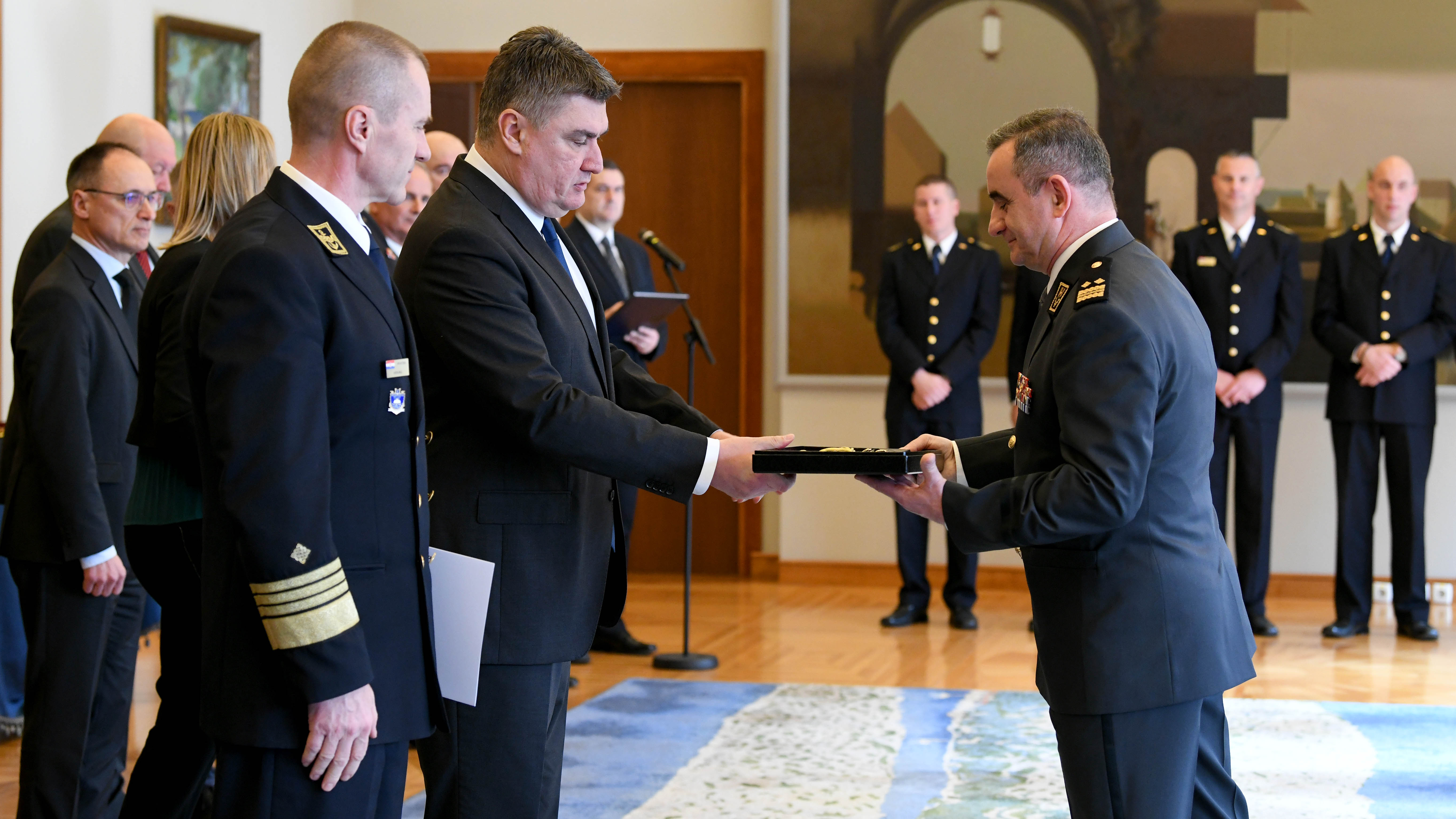 Nakon završetka časne i uzorne službe u Oružanim snagama Republike Hrvatske, Predsjednik Republike i vrhovni zapovjednik Oružanih snaga Republike Hrvatske uručio je časničke bodeže, a načelnik Glavnog stožera OS RH admiral Robert Hranj zahvalnice, generalima, brigadirima i kapetanima bojnog broda koji su umirovljeni tijekom 2022. Godine. Bodeži i zahvalnice uručeni su im za časnu i uzornu službu, predano obnašanje dužnosti, uspješnu suradnju, zajednički rad i osobni doprinos u stvaranju i razvoju Oružanih snaga Republike Hrvatske.