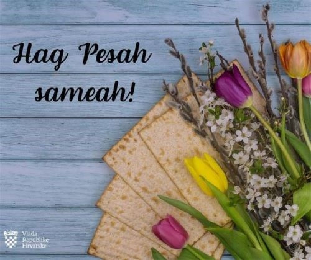 Svim vjernicima židovske vjeroispovijesti u Republici Hrvatskoj upućujem srdačnu čestitku, želeći svima obilje mira, radosti i svakoga dobra. Hag Pesah sameah!“