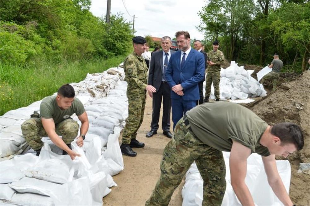 Banožić je istaknuo da je Hrvatska vojska pokazala spremnost i odmah se uključila s 300 pripadnika na području Sisačko-moslavačke županije, gdje je u vrlo kratkom vremenu ojačano do 500 metara nasipa te napunjeno 45.000 vreća s pijeskom.