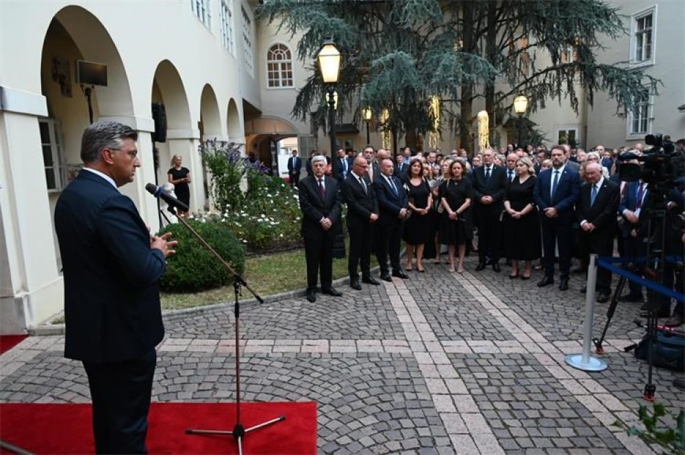 Predsjednik Vlade Andrej Plenković organizirao je svečano primanje za hrvatske veleposlanike, generalne konzule, konzule i vojne izaslanike te strane veleposlanike u Republici Hrvatskoj u Banskim dvorima uoči sutrašnje Konferencije na kojoj će se govoriti o ključnim strateškim ciljevima Republike Hrvatske i vanjskopolitičkim postignućima u proteklom razdoblju.