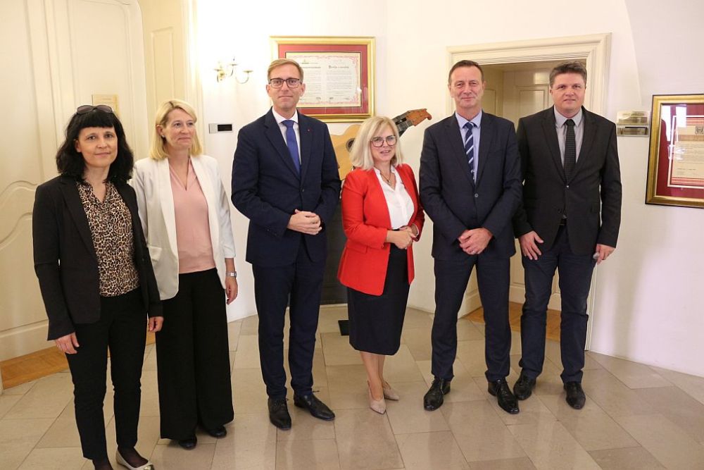 Grad Varaždin je u utorak, 26. rujna 2023. godine posjetio Marko Koprivc, državni tajnik Ministarstva kohezije i regionalnog razvoja Republike Slovenije. U palači Patačić primili su ga gradonačelnik dr. sc. Neven Bosilj, zastupnica u Hrvatskom saboru Barbara Antolić Vupora i zamjenik gradonačelnika Miroslav Marković. Radnom sastanku prisustvovali su i Željko Bedeković, ravnatelj Razvojne agencije Sjever Dan i stručni suradnik Marin Šipek te suradnice iz slovenskog ministarstva Vesna Engelman, voditeljica programa Interreg za Hrvatsku i Sloveniju, Jadranka Plut, voditeljica sektora za financijske mehanizme i Tanja Vrzić, suradnica u kabinetu državnog tajnika.