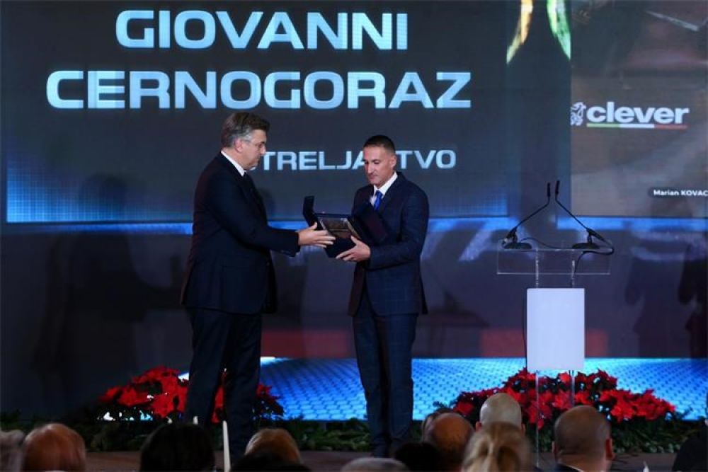 Premijer je uručio nagradu najuspješnijem sportašu godine - Giovanniju Cernogorzu, svjetskom i europskom prvaku u gađanju letećih meta. Istaknuo je da je Vlada, u ovoj predolimpijskoj godini, izdvojila za sport 50 milijuna eura, a dogodine će čak 110 miljuna eura.