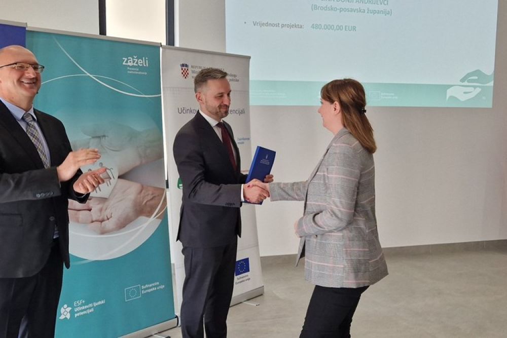 Ministar rada, mirovinskoga sustava, obitelji i socijalne politike Marin Piletić uručio je u Vinkovcima 39 ugovora o provedbi projekta "Zaželi" korisnicima s područja pet slavonskih županija poručivši kako bi usluga koju nudi taj projekt trebala postati trajnim rješenjem.