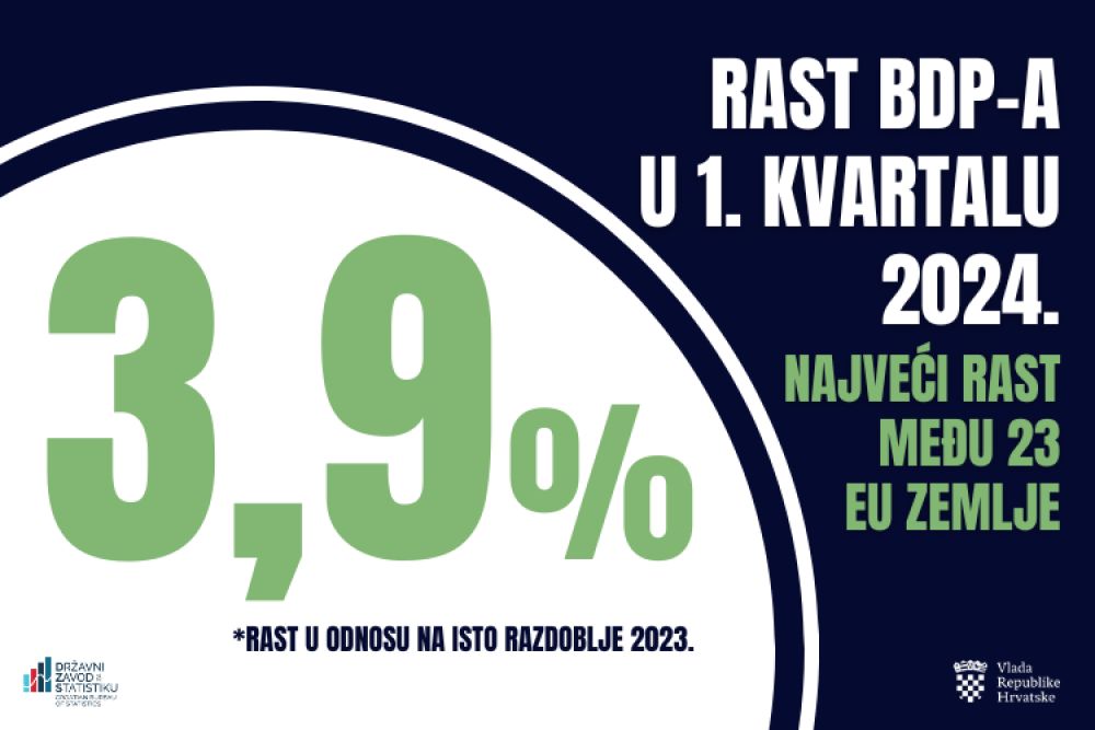 Izrazio je zadovoljstvo podacima koje je danas objavio Državni zavod za statistiku o rastu BDP-a u prvom kvartalu 2024. od 3,9 posto. U ovom trenutku to je najveći rast među 24 članice Europske unije koje su dosad objavile te podatke.