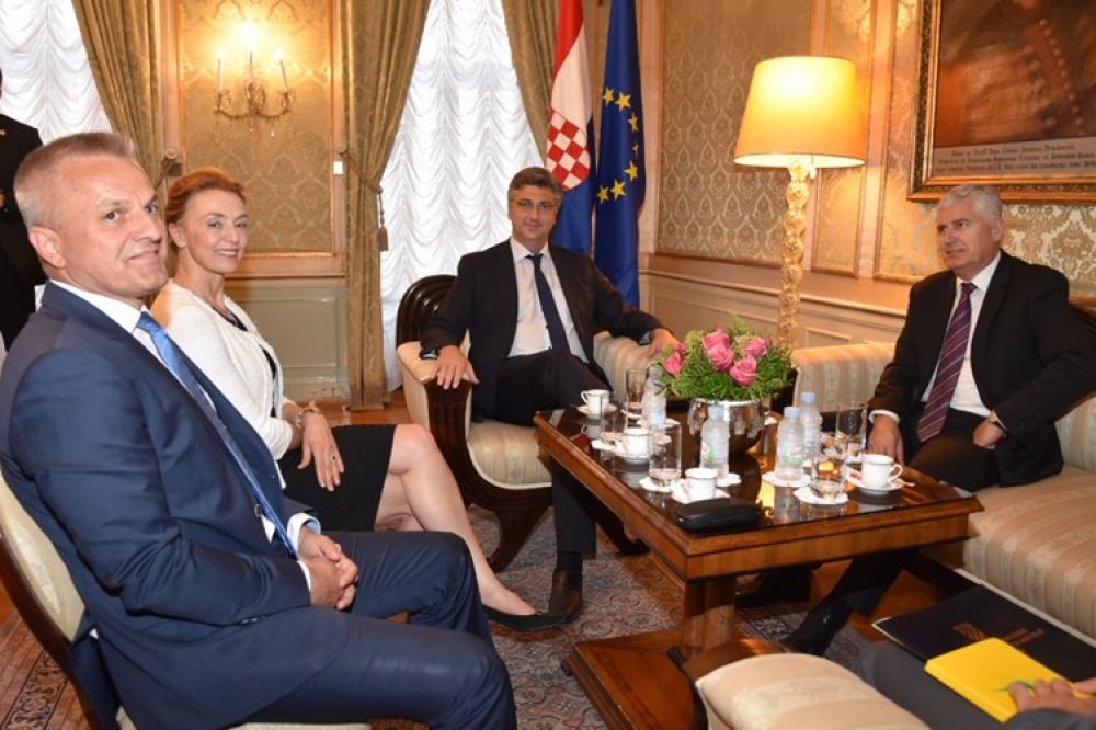 Predsjednik Vlade Andrej Plenković primio je danas u Banskim dvorima hrvatskog člana Predsjedništva Bosne i Hercegovine, Dragana Čovića. Na sastanku su također bili potpredsjednica Vlade i ministrica vanjskih poslova, Marija Pejčinović Burić, i državni tajnik Središnjeg državnog ureda za Hrvate izvan Republike Hrvatske, Zvonko Milas.  Raspravljalo se o odnosima Hrvatske i Bosne i Hercegovine, stanju na jugoistoku Europe te suradnji dviju zemalja u područjima gospodarstva, prometa i infrastrukture, kao i zajedničkim naporima u suzbijanju ilegalnih migracija.