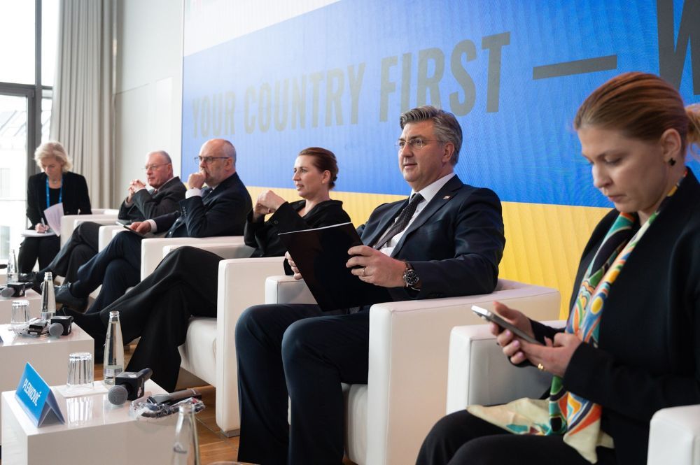 U razgovoru s novinarima nakon panela, premijer Plenković upozorio je kako bi nagrađivanje agresora mirovnim sporazumom koji ne bi uzeo u obzir principijelni pristup, imao dalekosežne posljedice za mir i stabilnost u svijetu i međunarodni poredak kakav se zagovara u svijetu nakon 1945. godine.