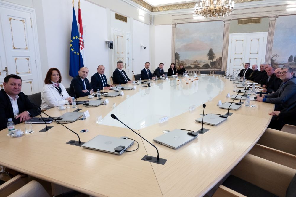Predsjednik Vlade Andrej Plenković primio je danas predstavnike Saveza udruga branitelja radnika Republike Hrvatske, na čelu s predsjednikom Saveza Sinišom Mastelićem. Uz predsjednika Vlade bili su potpredsjednik Vlade i ministar hrvatskih branitelja Tomo Medved, potpredsjednik Vlade i ministar unutarnjih poslova Davor Božinović, potpredsjednik Vlade i ministar obrane Ivan Anušić, ministar rada, mirovinskoga sustava, obitelji i socijalne politike Marin Piletić, državni tajnik u Ministarstvu mora, prometa i infrastrukture Žarko Tušek i glavna državna rizničarka Danijela Stepić.