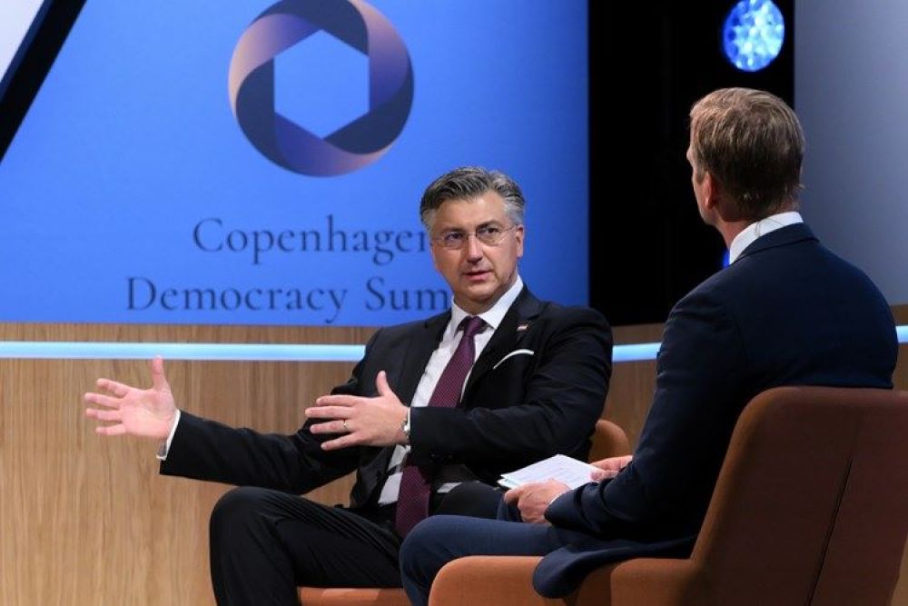 Sudjelujući na Copenhagen Democracy Summitu, predsjednik Vlade Andrej Plenković govorio je na panelu o Ukrajini, jačanju europske obrane i budućnosti Europe. Potrebno je postići pravedan i održiv mir uz sigurnosna jamstva za Ukrajinu, kazao je i dodao da bi rješenje koje bi nagradilo agresora i opravdalo kršenje međunarodnog prava bilo dugoročno loše za Ukrajinu, Europu i cijeli svijet. Na sastanku s danskom premijerkom Frederiksen razgovarao je o jačanju hrvatskog izvoza u Dansku i bilateralne suradnje između dviju država.