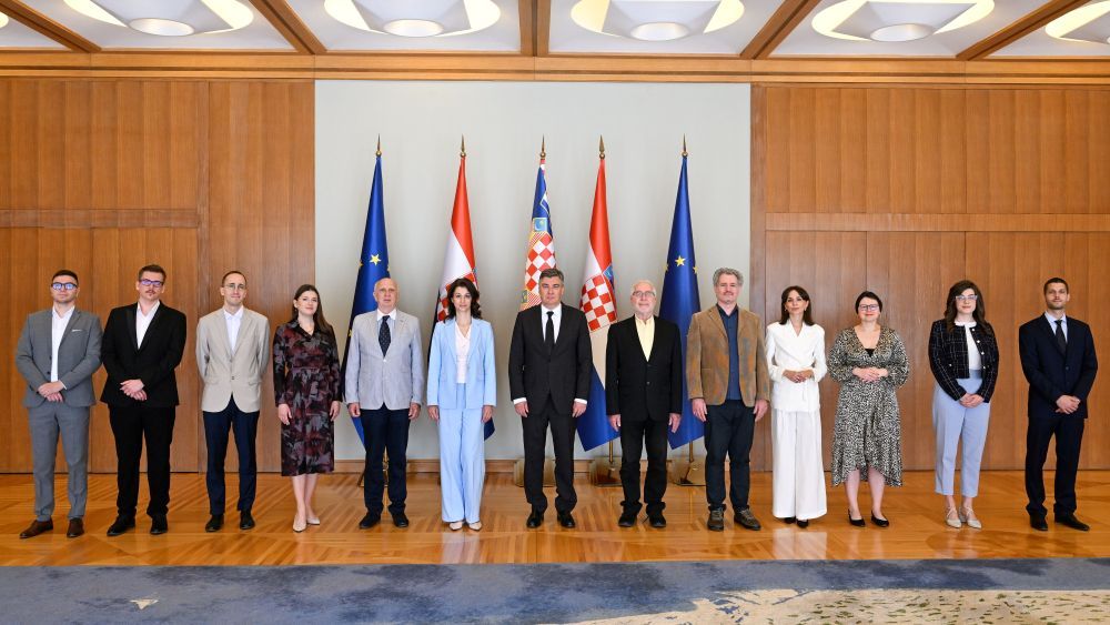 Predsjednik Republike Zoran Milanović primio je danas izaslanstvo Društva sveučilišnih nastavnika i drugih znanstvenika te mlade znanstvenike i umjetnike, dobitnike Godišnje nagrade Društva za 2024. godinu. Dobitnici Godišnje nagrade su dr. sc. Lana Cindrić, dr. sc. Matej Grcić, Carlo Giorgio Grlj, mag. ing. aeroing, dr. sc. Dora Hlebec, dr. sc. Nino Kadić, Lovre Marušić, mag. mus., dr. sc. Josipa Papac Zjačić i Josipa Sarjanović, univ. mag. chem.