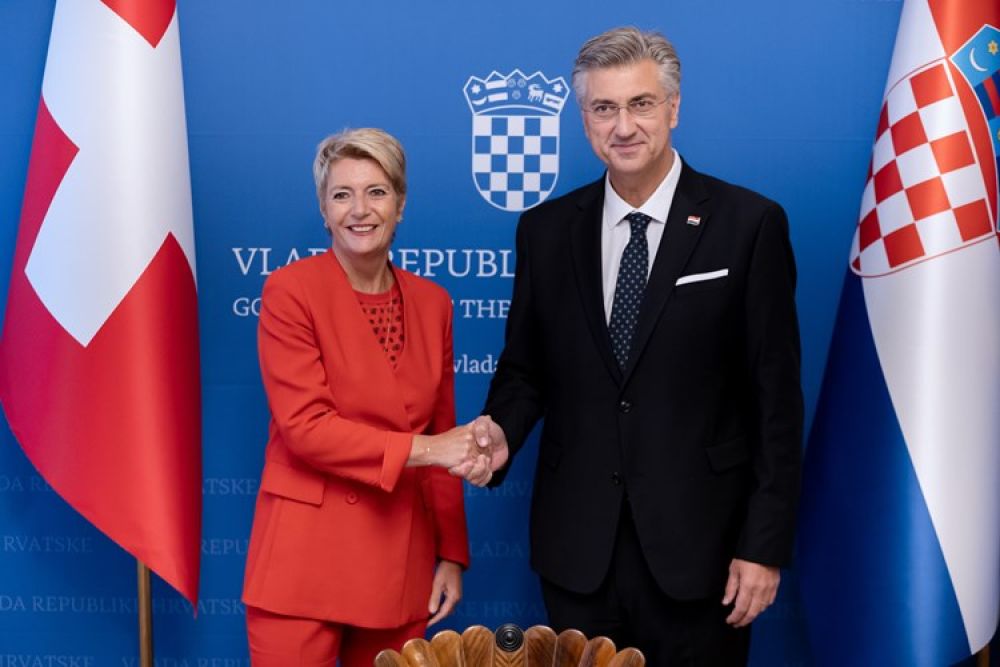 Predsjednik Vlade Andrej Plenković primio je danas u Banskim dvorima predsjednicu Švicarske Konfederacije Karin Keller-Sutter, koja boravi u posjetu Hrvatskoj. Razgovarali su o bilateralnim odnosima, koji su ocijenjeni odličnim i prijateljskim. Kada je riječ o gospodarskoj suradnji između Hrvatske i Švicarske, izraženo je zadovoljstvo što robna razmjena bilježi rast u proteklim godinama.