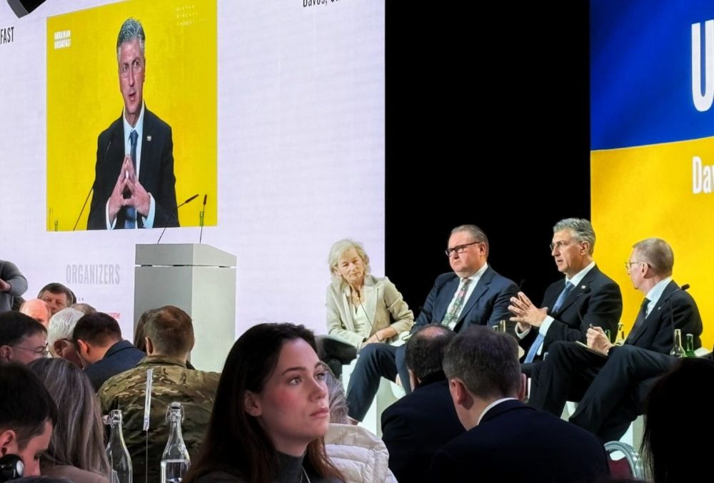 Predsjednik Vlade Andrej Plenković sudjelovao je danas u Davosu na panelu“ Ukrajinski doručak" u organizaciji Victor Pinchuk Fondacije i Jalta - Europske strategije. Tom je prigodom ponovio snažnu potporu i solidarnost Hrvatske s Ukrajinom koja, između ostaloga, proizlazi iz našeg vlastitog iskustva žrtve velikosrpske agresije Miloševićevog režima početkom 1990-ih koja je u jednom trenutku isto imala 27 posto okupiranog teritorija.