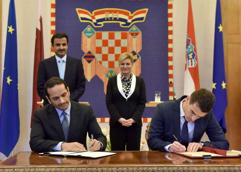 Na poziv predsjednice Republike Hrvatske Kolinde Grabar-Kitarović u uzvratnom službenom posjetu Republici Hrvatskoj boravi Njegovo Visočanstvo šeik Tamim bin Hamad bin Khalifa Al Thani, emir Države Katara.Službeni posjet Njegovog Visočanstva emira Države Katara započeo je svečanim dočekom u Uredu predsjednice,susretom Predsjednice Republike Hrvatske i Njegovog Visočanstva emira Države Katara te bilateralnim sastankom službenih izaslanstava, nakon kojeg je potpisano niz dokumenata o suradnji.Prijateljske i pozitivne odnose Hrvatske i Katara prati rast ukupne razmjene no ona može biti bolja u čemu važnu ulogu može imati hrvatska zajednica u toj zemlji bogatoj energentima, suglasili su se predsjednica Republike Kolinda Grabar-Kitarović i šeik Tamim bin Hamad bin Khalifa Al Thani.Katarski emir kazao je kako je s predsjednicom Grabar-Kitarović razgovarao i o regionalnim politikama i o tome što današnji svijet čini nestabilnim."Bilateralni i politički odnosi između naših zemalja prijateljski su i pozitivni", no za njihovo unapređenje i jačanje potrebni su "intenzivniji kontakti u svim područjima suradnje", kazala je Predsjednica. Izrazila je uvjerenje kako će razvoj bilateralnih odnosa sa zemljama Zaljeva biti od velike važnosti za Hrvatsku. S Predsjednicom se suglasio emir Al Thani koji je posebno pohvalio sudjelovanje hrvatskih gospodarstvenika u Kataru. "Želim naglasiti da i hrvatske tvrtke u Kataru daju veliki doprinos", kazao je emir Al Thani. Hrvatska zajednica može poslužiti kao spona između naroda, pa tako i hrvatska zajednica od nekih 500 ljudi može "predstavljati taj most između naših zemalja", dodala je Predsjednica.