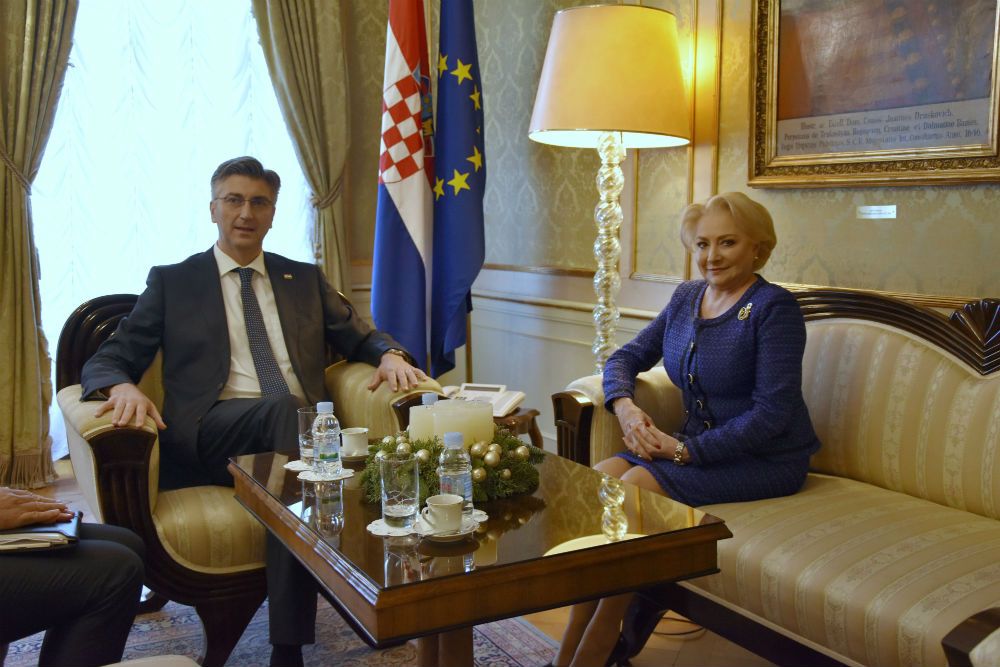 Predsjednik Vlade Andrej Plenković, uoči sastanka na vrhu Srednjoeuropske inicijative, primio je u Banskim dvorima predsjednicu Vlade Rumunjske Vasilicu-Vioricu Dăncilu.Nakon razgovora, istaknuli su jačanje suradnje u okviru tročlanog predsjedanja Europskom unijom, ocijenivši da dvije zemlje dijele brojne zajedničke interese, osobito u pregovorima o Višegodišnjem financijskom okviru EU-a i ulasku u schengenski prostor.Predsjednik Vlade uvodno je zahvalio rumunjskoj premijerki Dancili na današnjem posjetu Zagrebu rekavši kako je riječ o drugom zajedničkom bilateralnom susretu proteklih sedam mjeseci nakon premijerov posjeta Bukureštu u svibnju. Njezin dolazak ocijenio je signalom prijateljstva, poštovanja i želje za još jačom bilateralnom suradnjom, koja se protekle dvije godine izrazito intenzivirala.