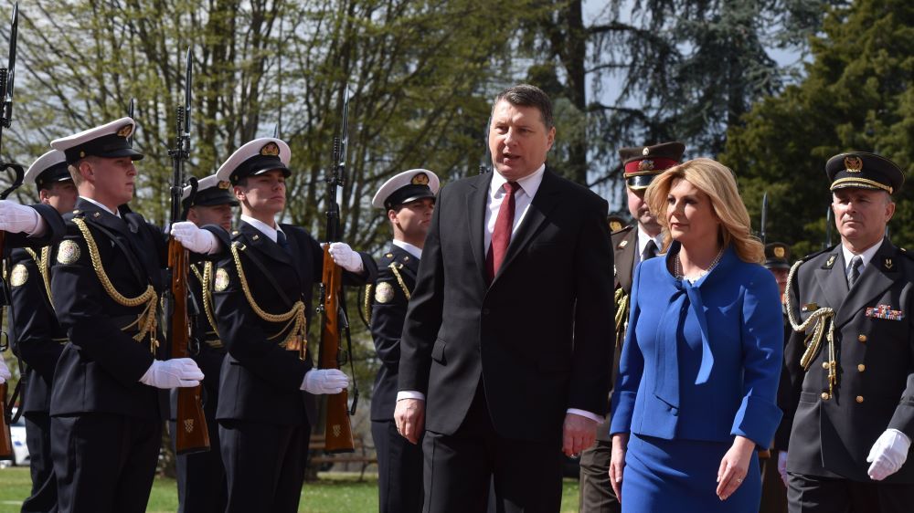 Na poziv predsjednice Republike Hrvatske Kolinde Grabar-Kitarović u jednodnevnom službenom posjetu Republici Hrvatskoj boravi predsjednik Republike Latvije Raimonds Vējonis.Službeni posjet Predsjednika Republike Latvije započeo je svečanim dočekom u Uredu predsjednice i tête-à-tête susretom dvoje predsjednika, nakon kojeg je uslijedio bilateralni sastanak službenih izaslanstava Republike Hrvatske i Republike Latvije te obraćanja predsjednice Grabar-Kitarović i predsjednika Vējonisa."Naše dvije države ne povezuje samo prijateljstvo, slična veličina i povijest, već i činjenica kako dijelimo mnoga stajališta o Europskoj uniji i globalnim pitanjima", kazala je predsjednica Grabar-Kitarović.