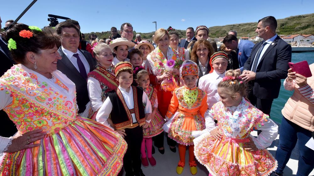 Predsjednica je na otvorenju sušačke rive istaknula predivnu klimu i pejzaž otoka te ustvrdila da je napredak uočljiv, no još uvijek postoji niz problema zbog kojih je Susak i danas suočen s depopulacijom.