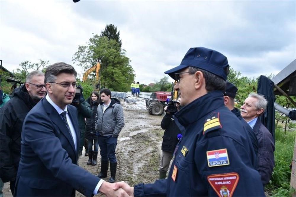 Predsjednik Vlade Andrej Plenković posjetio je Karlovac kako bi se upoznao sa stanjem na terenu uslijed rasta vodostaja karlovačkih rijeka. Potom je posjetio i Ušticu kod Jasenovca, kako bi se upoznao s aktivnostima Stožera za obranu od poplava u Sisačko-moslavačkoj županiji.Ovom prigodom zahvalio je ministrima Tomislavu Ćoriću i Davoru Božinoviću te svim dežurnim službama, od Hrvatskih voda, HGSS-a i HCK-a do vatrogasaca i policije koji su neprekidno i požrtvovano radili na obrani od poplava. Premijer Plenković je izrazio zadovoljstvo jer su obranjene kuće od poplava, ocijenivši da je koncept box barijera pravo rješenje za Koranu i Mrežnicu."Ljudi koje smo ovdje znali zateći ranijih godina s metar i nešto vode u prizemljima su zadovoljni", ustvrdio je predsjednik Vlade, istaknuvši da se sustav obrane od poplava na ovom području pokazao vrlo učinkovitim.