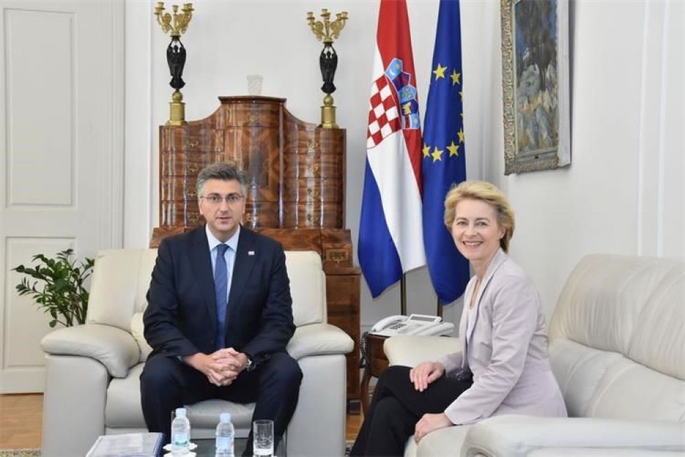 Predsjednik Vlade Andrej Plenković 30. srpnja je u Banskim dvorima primio novoizabranu predsjednicu Europske komisije Ursulu von der Leyen. Razgovarali su o predsjedanju Hrvatske Europskom unijom, ulasku Hrvatske u Schengenski prostor i europodručje, Višegodišnjem financijskom okviru EU-a te o drugim aktualnim temama.Predsjednik Vlade Plenković je u izjavi za medije izrazio zadovoljstvo izborom Ursule von der Leyen novom predsjednicom Europske komisije. „Pred Europskom unijom stoji izrazito mnogo izazova, a Europska pučka stranka, kao najveća europska obitelj, u programskim odrednicama nudi rješenja za sve stanovnike našeg kontinenta“, kazao je Plenković.