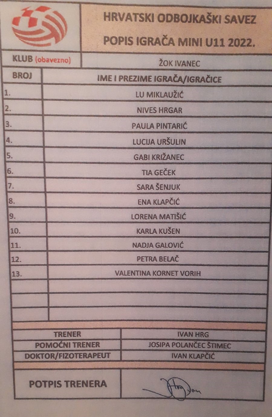 Ovogodišnja zlatna ekipa mini odbojke (u11) već mjesecima igra, svaki drugi vikend, svoju ligu mini odbojku koja je još uvijek u tijeku - preostaje za odigrati još jedno kolo 24. travnja protiv ŽOK Ludbreg. Zadnju provjeru tjedan dana prije državnog imale su u Zagrebu na turniru u organizaciji OK Olimpika (kasnije finalist na državnom prvenstvu) gdje su u konkurenciji šest najjačih mini odbojkaških ekipa grada Zagreba osvojile 1.mjesto pobijedivši sve protivnice sa 3:0 u setovima. Zanimljivo je bilo da je i na tom turniru finale bilo između OK Olimpik i ŽOK Ivanec.