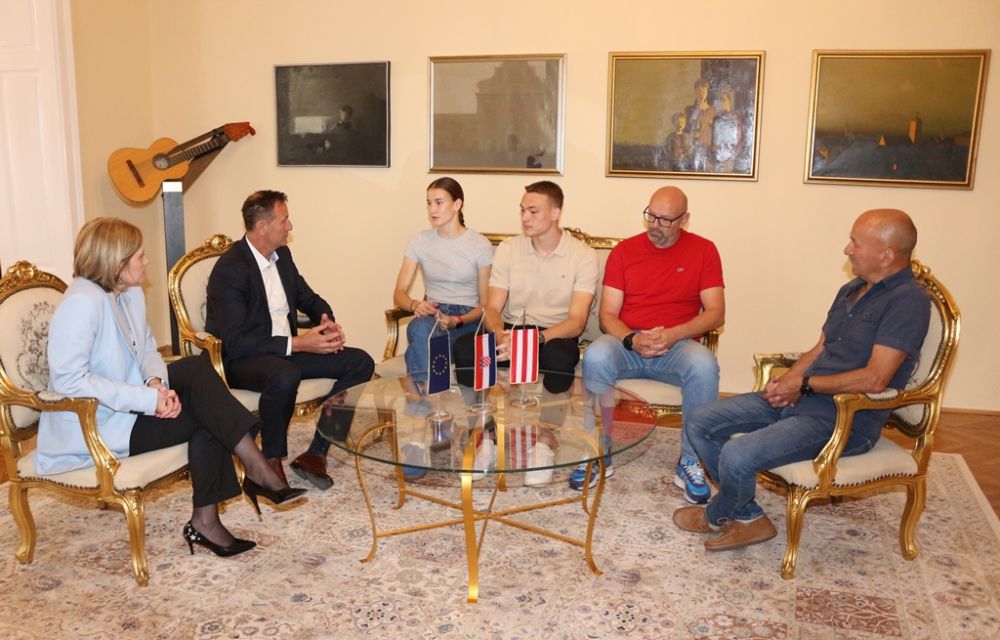 Gradonačelnik Grada Varaždina dr. sc. Neven Bosilj u četvrtak je održao prijem za atletičare AK Sloboda Janu Koščak i Roka Farkaša koji su na Prvenstvu Mediterana za mlađe seniore i seniorke u Egiptu osvojili zlatne i srebrnu medalju. Uz atletičare, prijemu su nazočili i predsjednik AK Sloboda Stjepan Smernjak i trener Patrik Koščak te pročelnica UO za društvene djelatnosti Danijela Vusić.