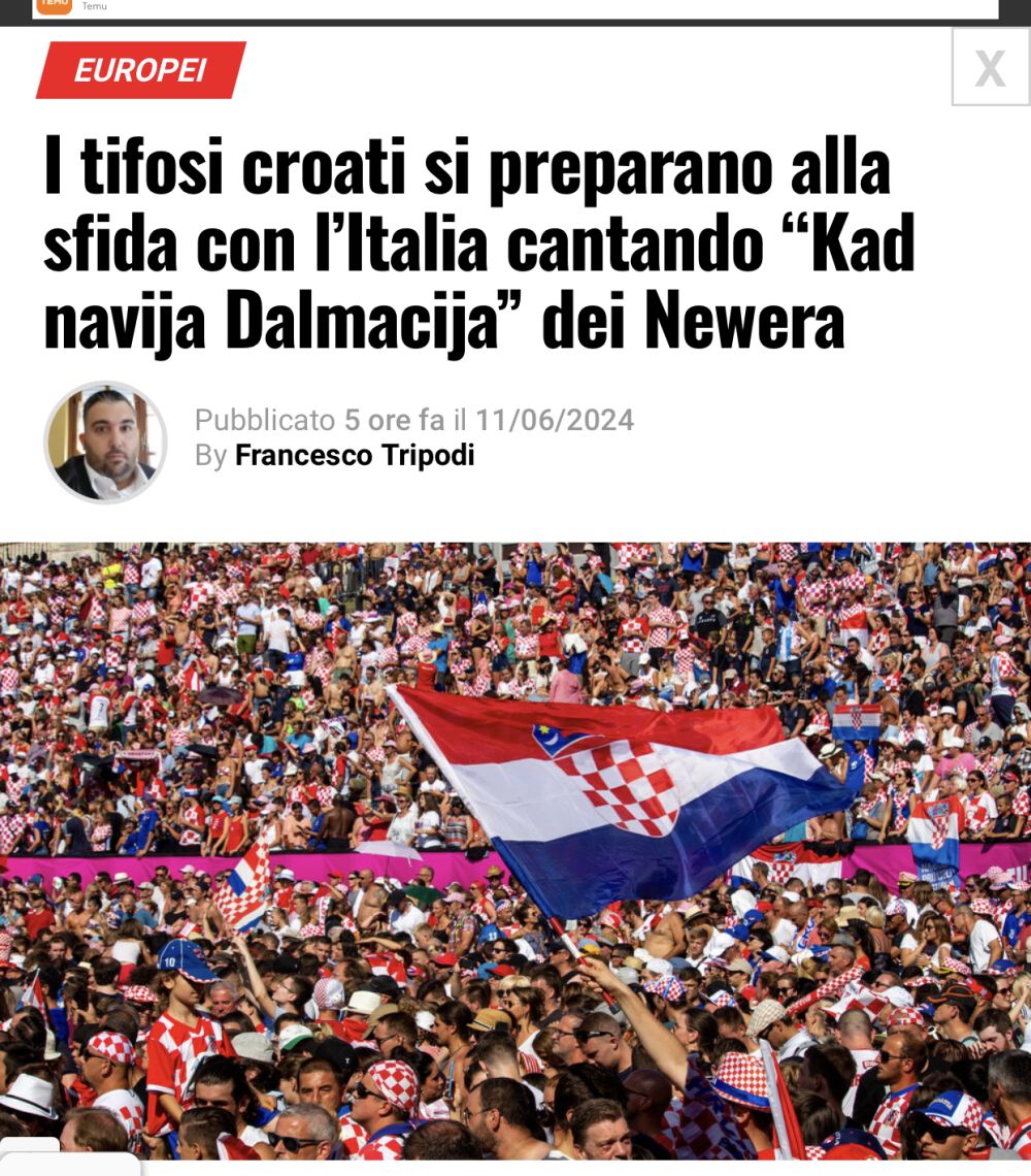 Kako se bliži početak europskog prvenstva u nogometu, talijanski mediji sve više prate zbivanja oko hrvatske reprezentacije, s obzirom da će se dvije momčadi susresti u Njemačkoj. Portal CalcioStyle.it tako je prostor posvetio i hrvatskim navijačkim pjesmama s time da su se fokusirali na skladbu “Kad navija Dalmacija” budući da je izvodi sastav Newera, bivši band nekadašnjeg izbornika Slavena Bilića. https://www.hia.com.hr/multimedia/video/item/39378-nova-navijacka-pjesma-hrvatake-reprezentacije-stize-iz-dalmacije